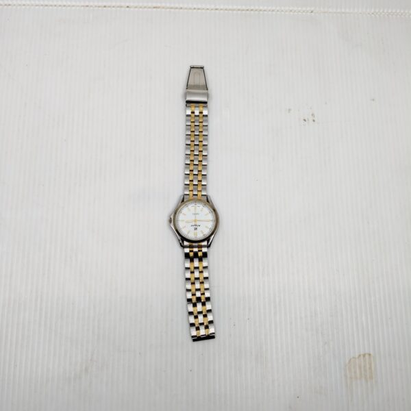 Refined simplicity meets timeless design in the Ajgor Regent, a quartz wristwatch that evokes understated elegance. The white dial is adorned with gold-toned hour markers and hands, framed by a polished gold bezel and housed in a silver case. Its dual-tone bracelet—alternating brushed steel and polished gold links—adds a touch of sophistication, making it suitable for both formal and everyday wear. With precise quartz movement and a clean layout, this piece is a tribute to classic watchmaking with a modern twist.