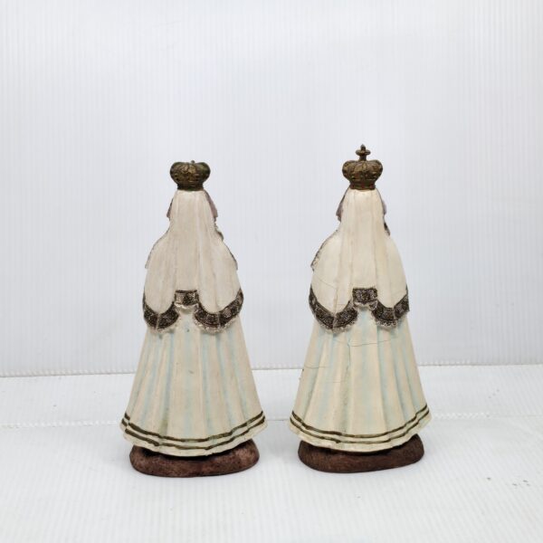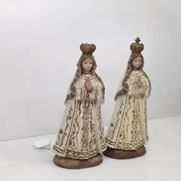 • Ivory and gold crowned Virgin Mary figurine, hands clasped in prayer, symbolizing devotion and grace. Perfect for altars, gifts, or sacred décor.